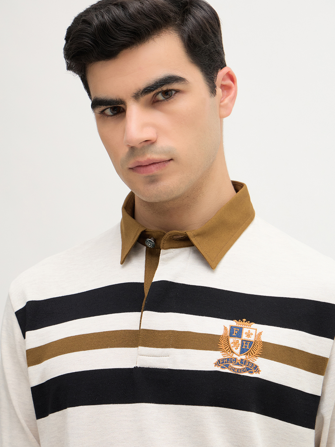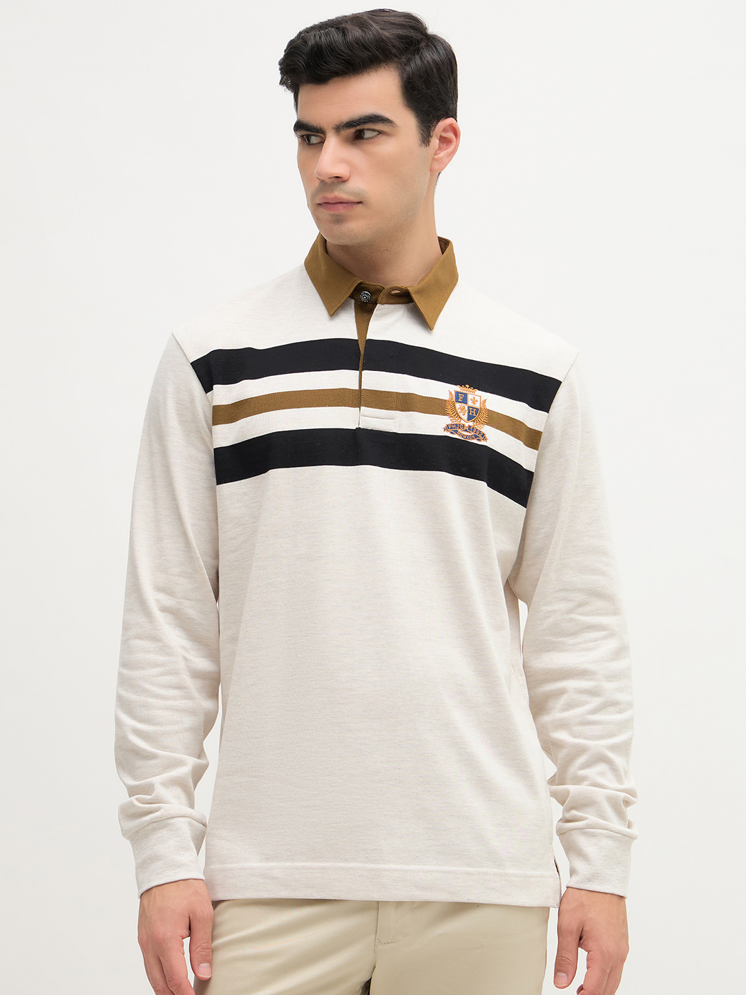 Fahrenheit Rugby Long Sleeve Polo features a classic design with bold stripe detailing across the chest and back. Perfect for layering or wearing on its own, this Polo combines athletic heritage with modern style.