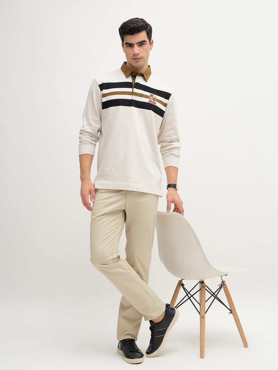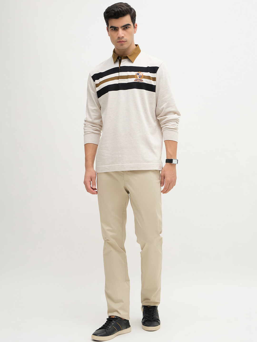 • Long sleeve polo with ribbed finishes.