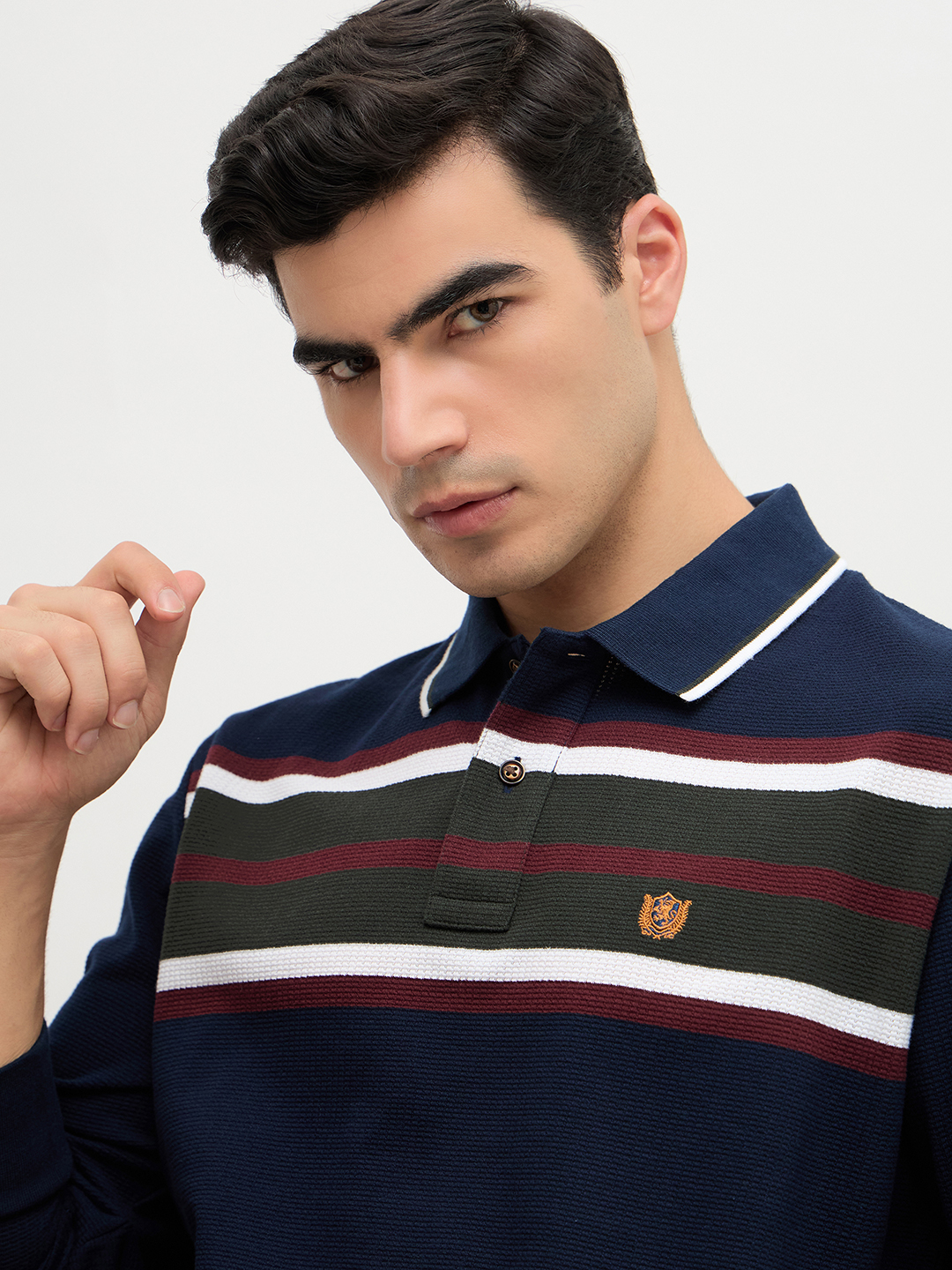 Upgrade your everyday style with the Chest Stripe Textured Polo, a refined twist on a classic staple. Designed with a soft textured knit and a bold stripe detail across the chest, this polo blends modern design with timeless appeal.