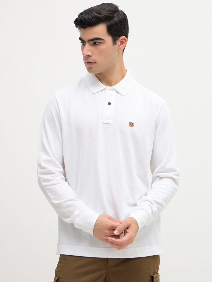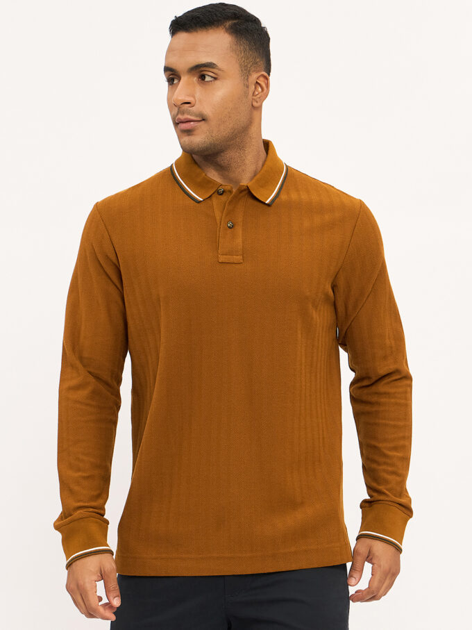 • Long sleeve polo with ribbed finishes.