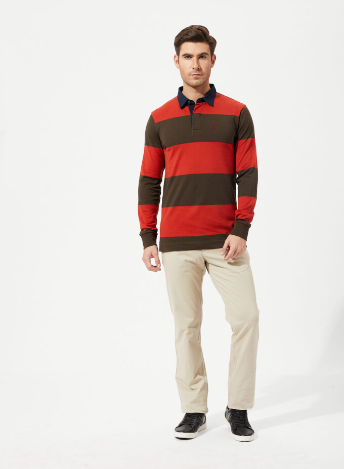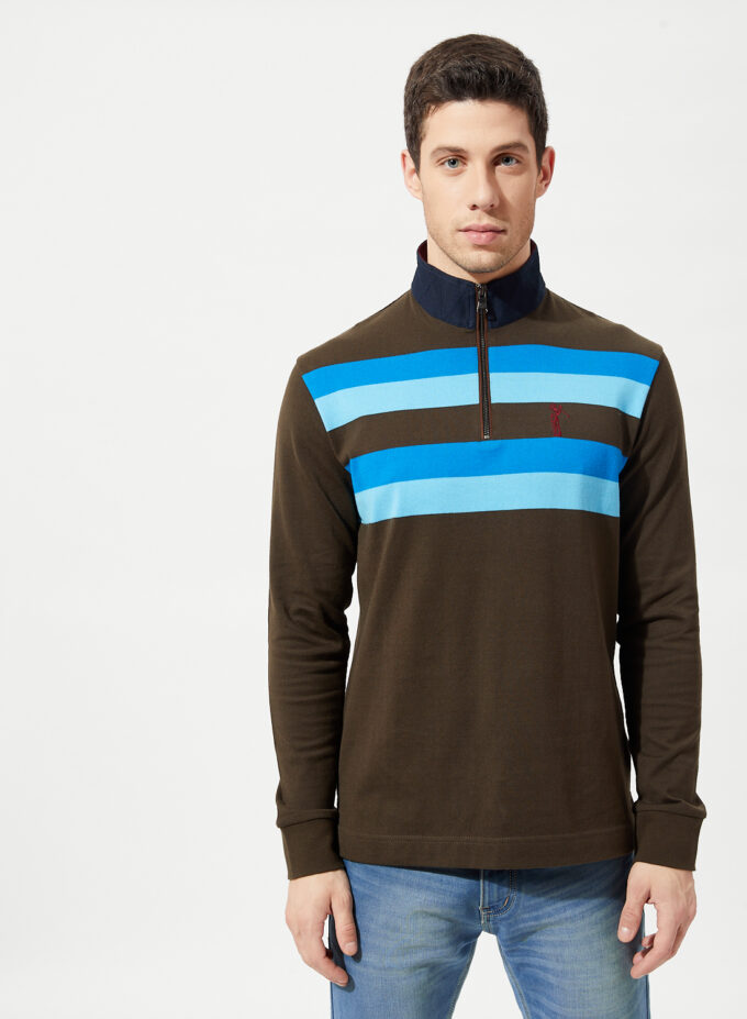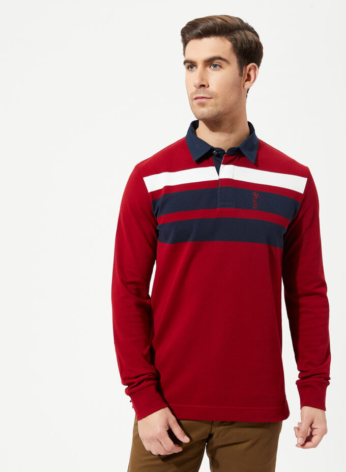 Stay comfortably stylish with this jacquard polo. Crafted from a cotton blend, it provides warmth and versatility.