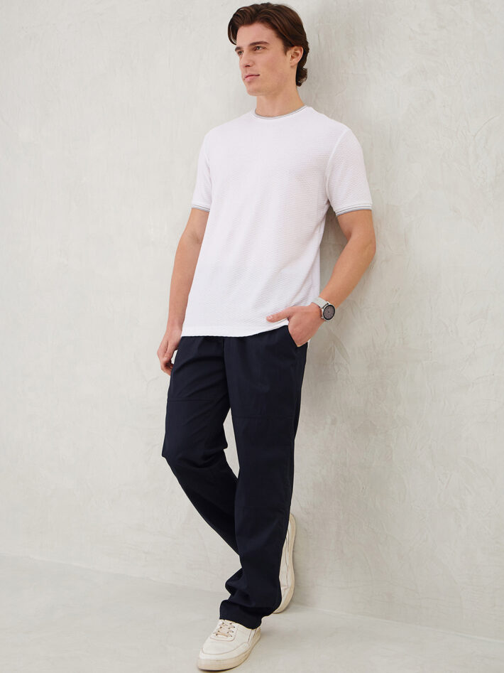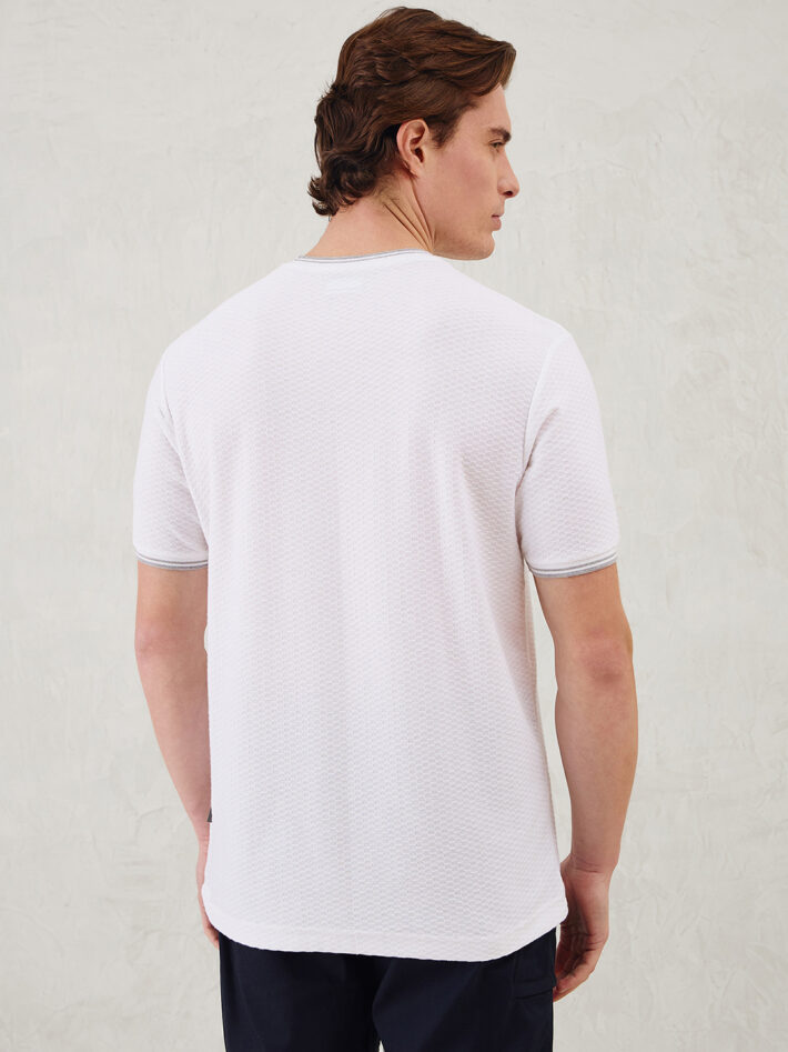Add understated elegance to your everyday wardrobe with our Jacquard Round Neck T-Shirt. Crafted from high-quality jacquard knit fabric, this tee features a subtle woven pattern that adds depth and texture without overpowering your look.