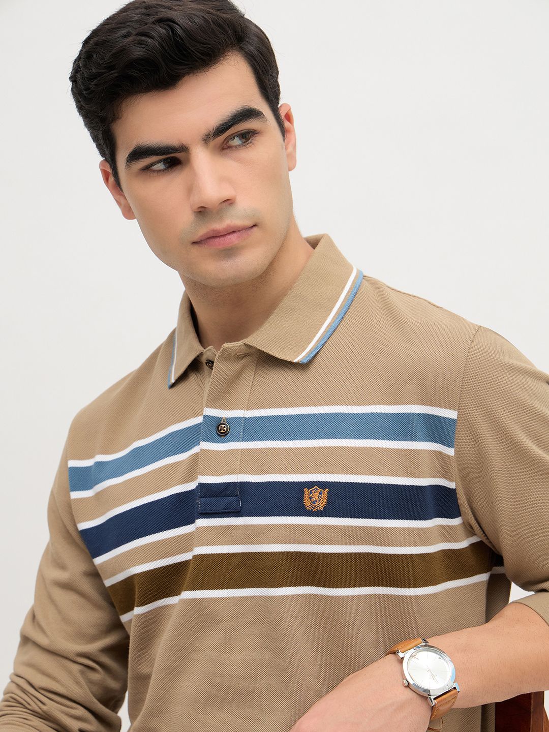 Elevate your casual style with our Pique Chest Stripe Long Sleeve Polo, a modern twist on a timeless classic. Featuring bold multi-stripe detailing across the front and back chest, it brings a dynamic edge to your everyday wardrobe.