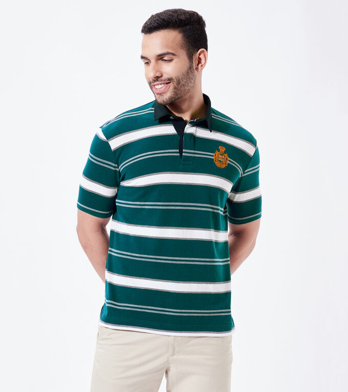 Fahrenheit men’s Rugby Stripe Polo made with yarn dyed fabric, designed with vintage inspiration for rough and tumble wear. Unique Rugby logo on chest with superior craftsmanship adds to the athletic effect.