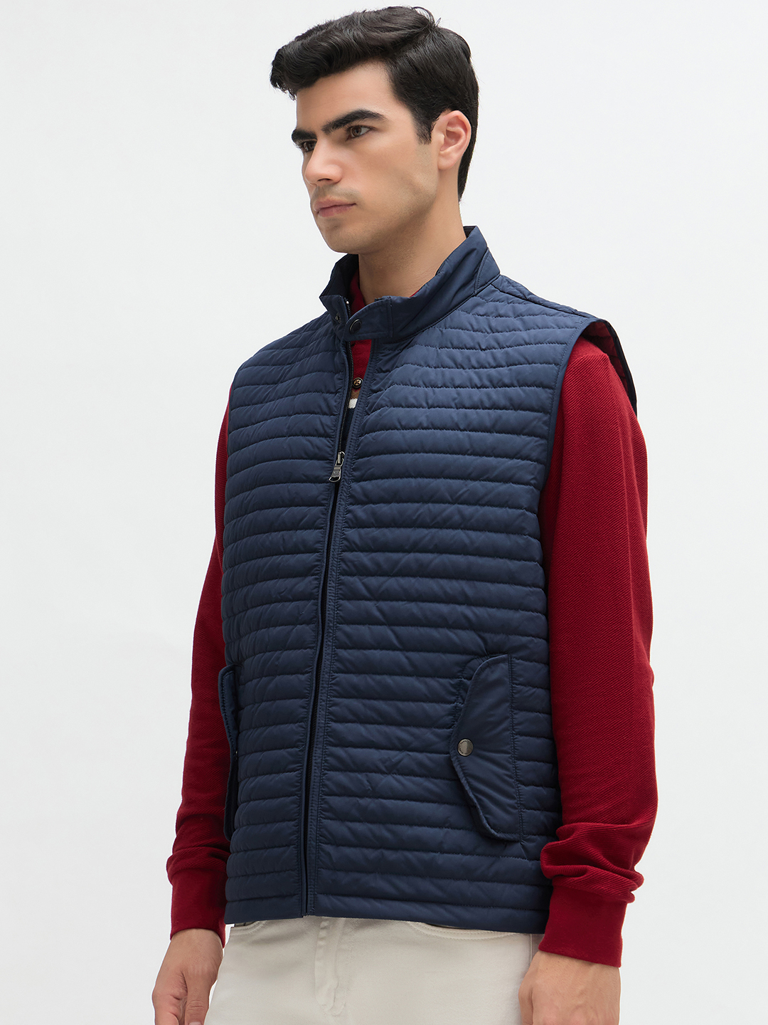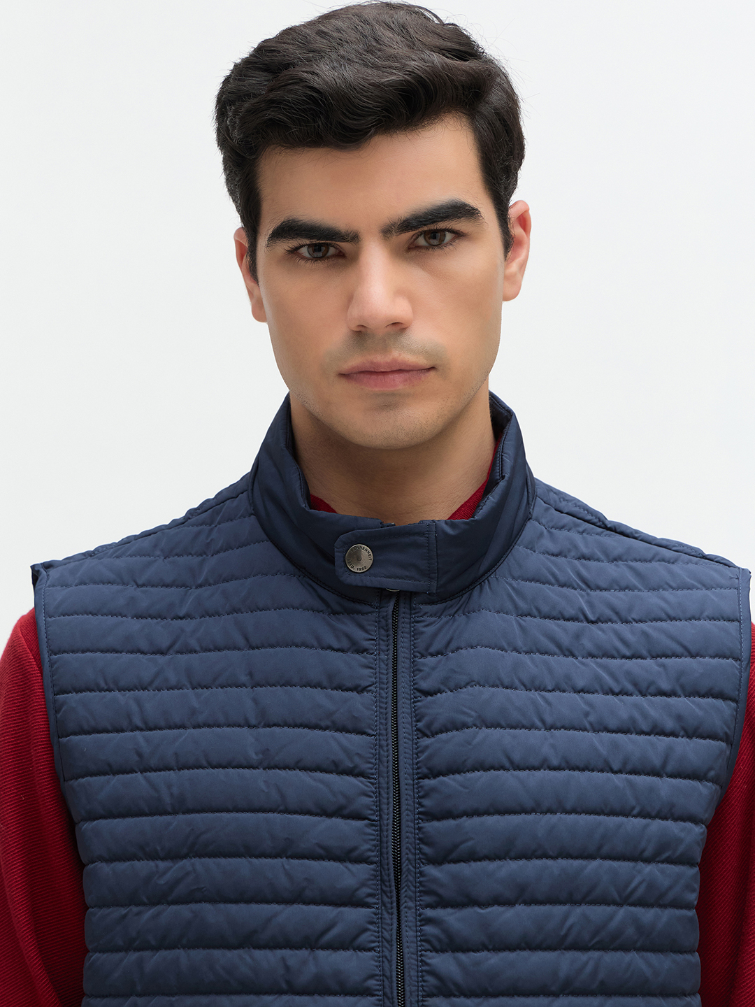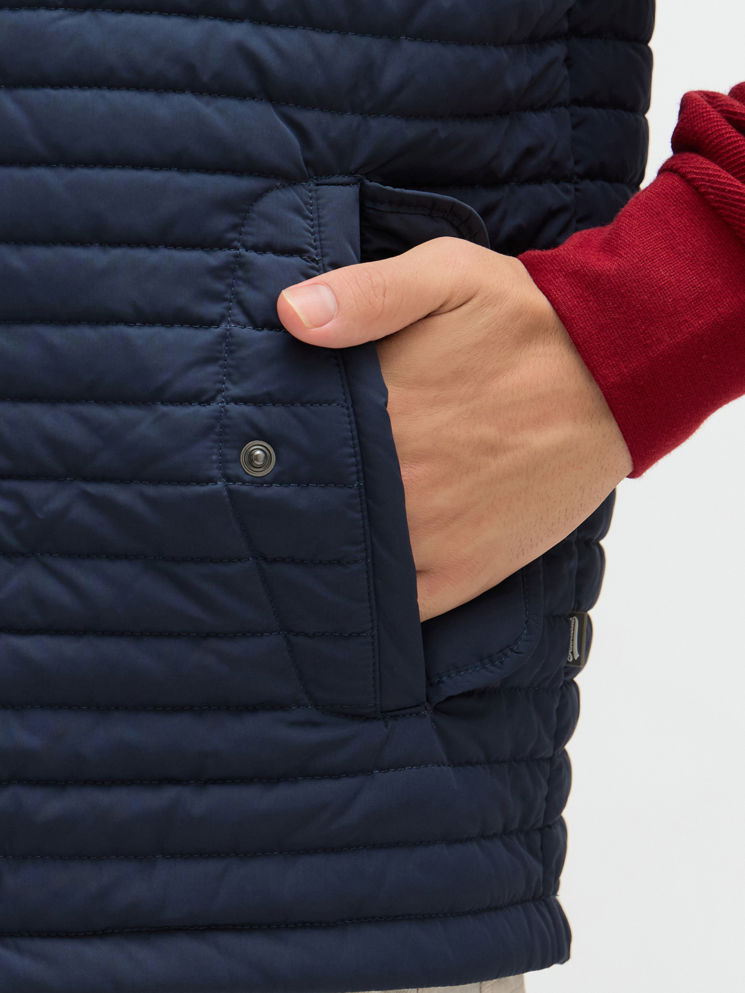 Stay warm without the bulk. This sleeveless quilted jacket features lightweight insulation, a smooth shell and a streamlined silhouette designed for easy layering.