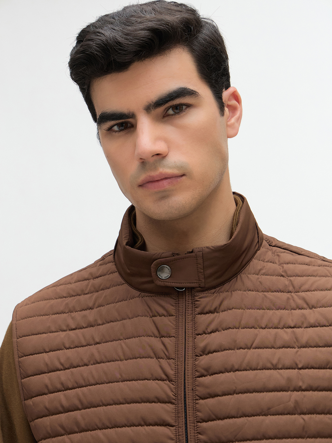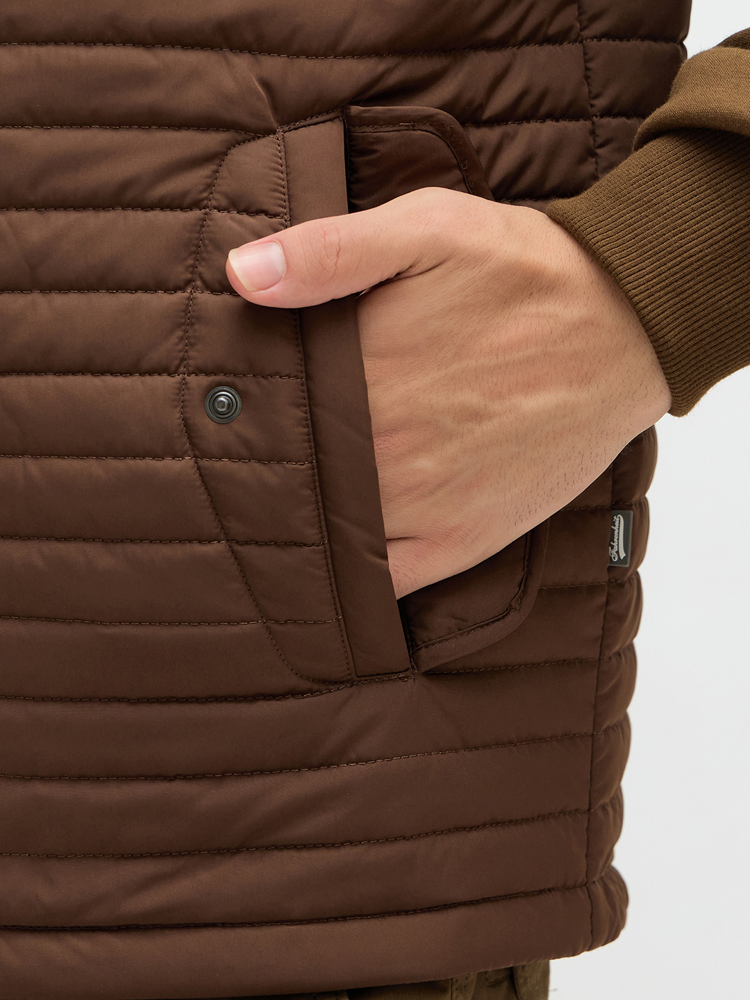 Stay warm without the bulk. This sleeveless quilted jacket features lightweight insulation, a smooth shell and a streamlined silhouette designed for easy layering.