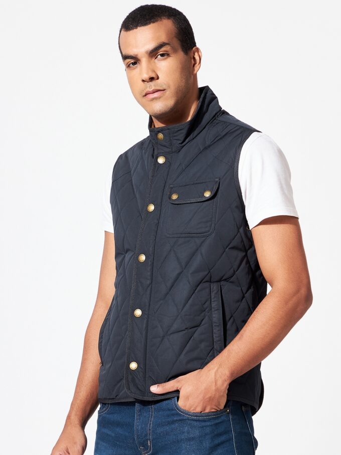 Give your look a contemporary edge with this versatile sleeveless jacket by Fahrenheit. Made from a lightweight, quilted nylon fabric, this jacket is perfect as a solo outer layer. An ever-useful layer with a stand collar for added protection.