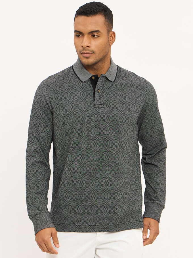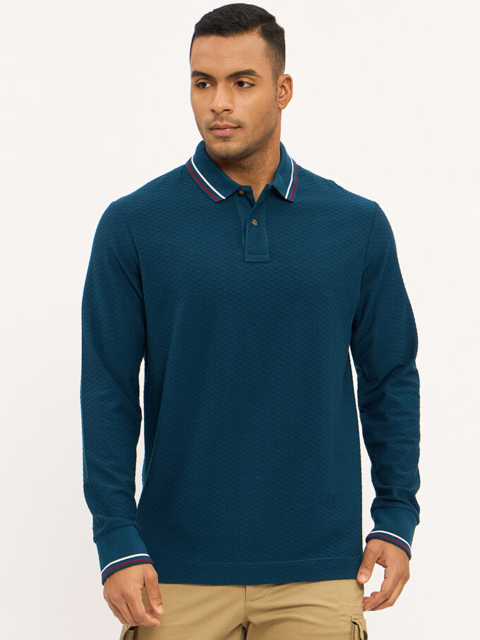- Long sleeve polo with ribbed finishes.
