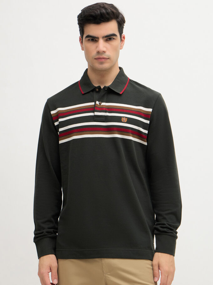 - Long sleeve polo with ribbed finishes.