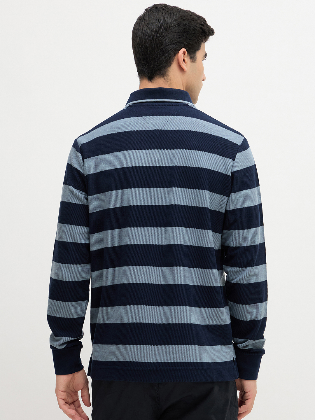 Add depth and dimension to your wardrobe with the Textured Knit Stripe Polo, where classic stripes meet elevated knit craftsmanship. Made from a soft, breathable knit fabric, this polo features a subtle textured finish that enhances its style and structure.