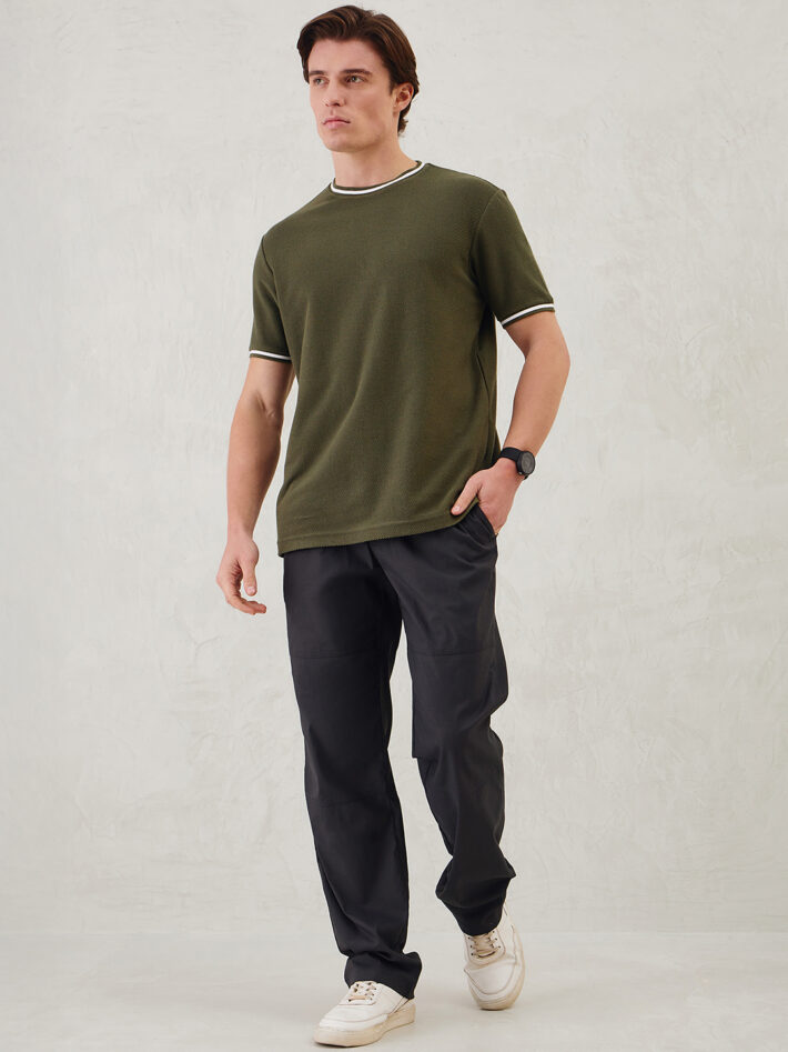 Redefine everyday essentials with our beautifully textured Twill Jacquard Round Neck t-shirt. Crafted from a rich jacquard fabric with a subtle twill weave, it combines timeless sophistication with a modern silhouette.