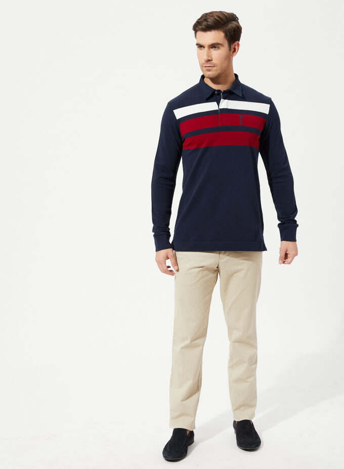A simple and versatile polo for an all-day stylish and comfortable look. This long sleeve polo comes in a clean, classic silhouette with a tipped collar and logo on the left-side chest.