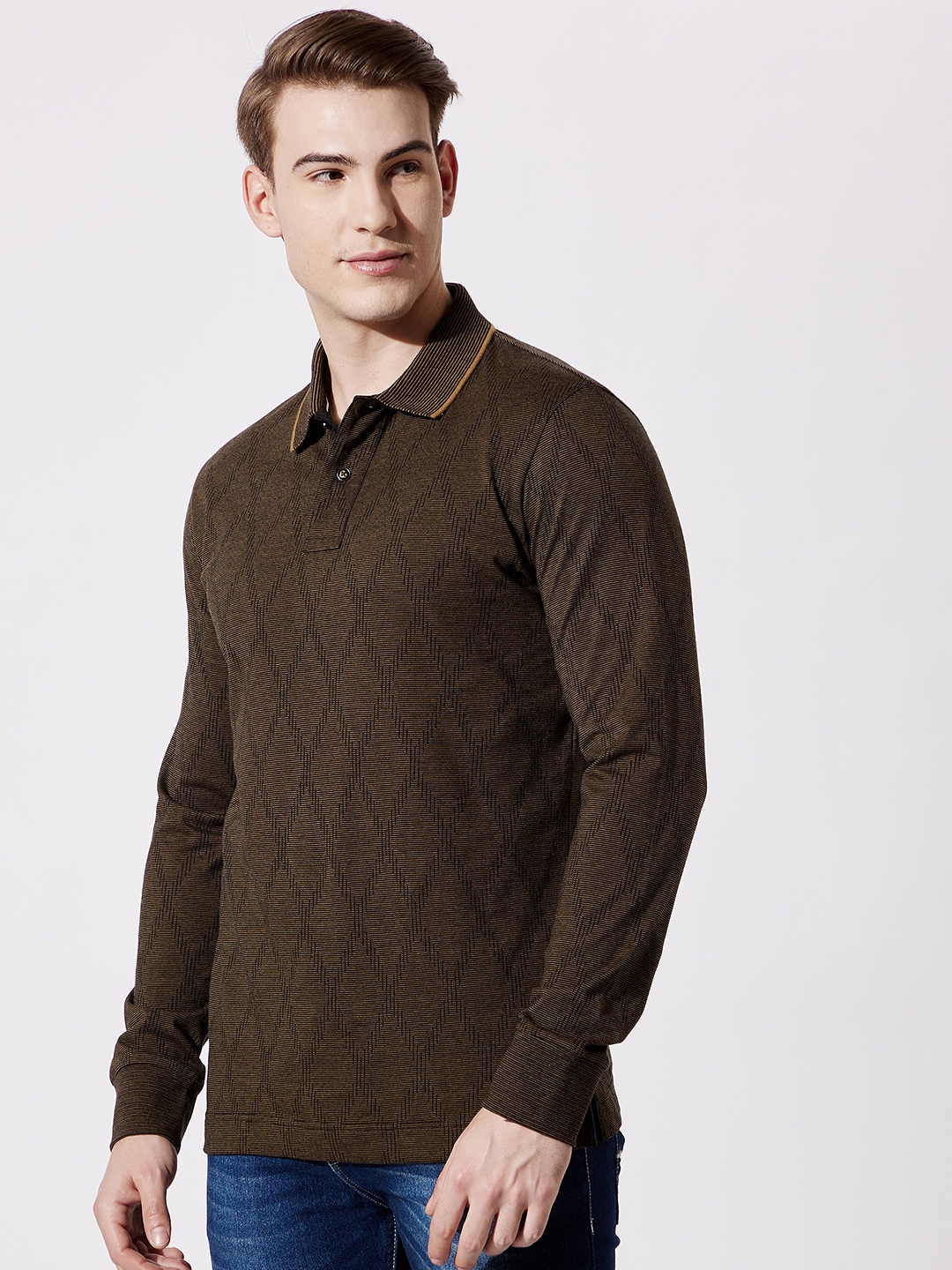 Fahrenheit men’s vintage Jacquard Polo features a argyle pattern with tipped collar. Equipped with long sleeves and ribbed cuffs for a more refined shape.