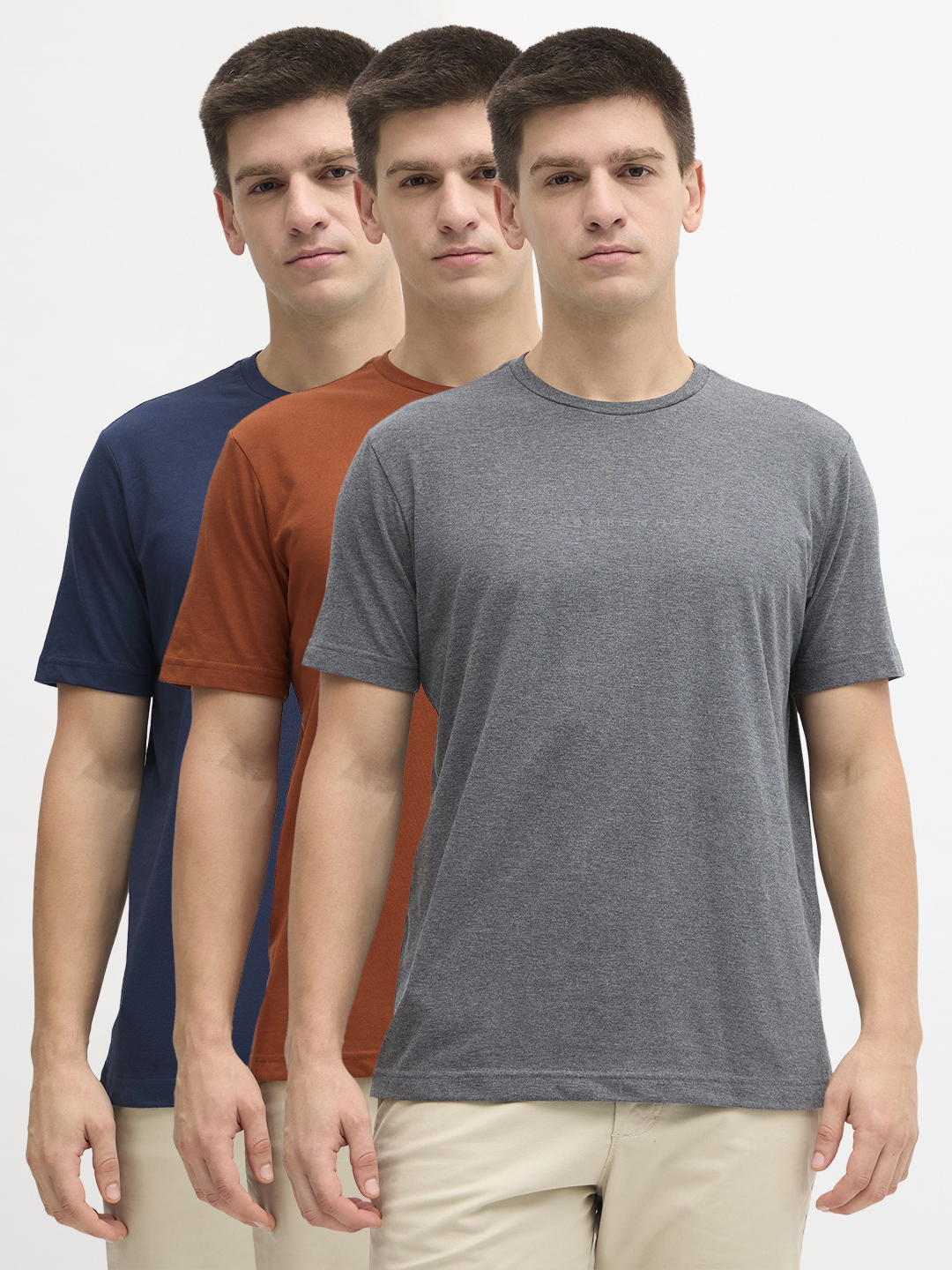 Pack of three round neck T-shirts with short sleeves and Fahrenheit branding on the chest.
