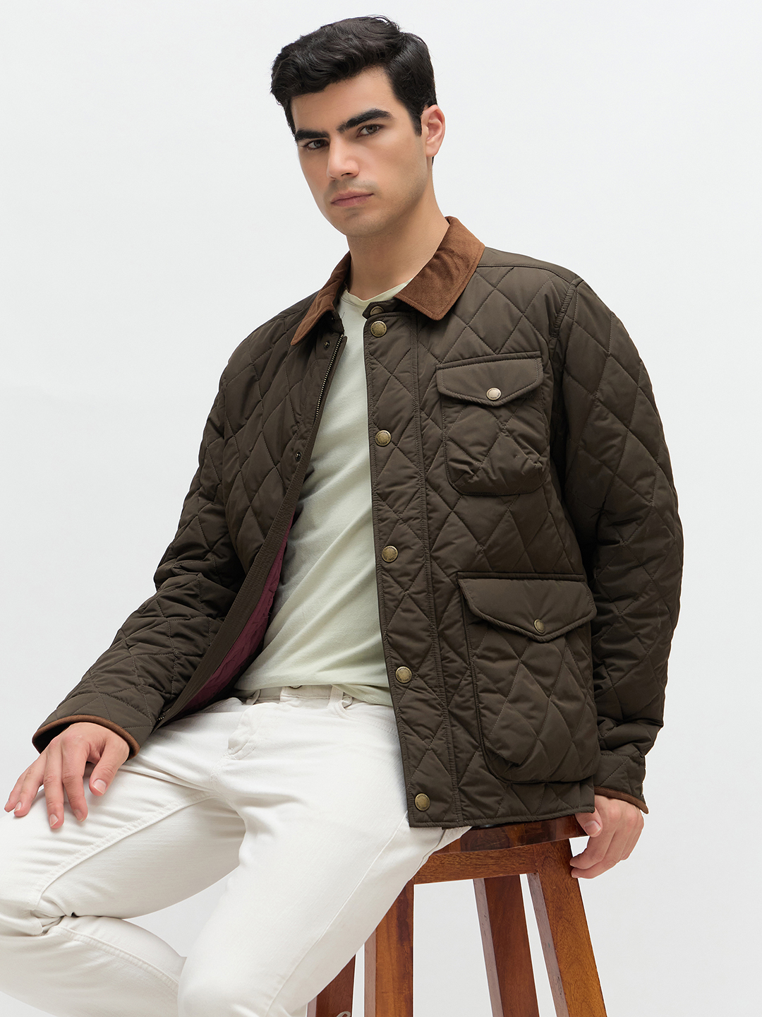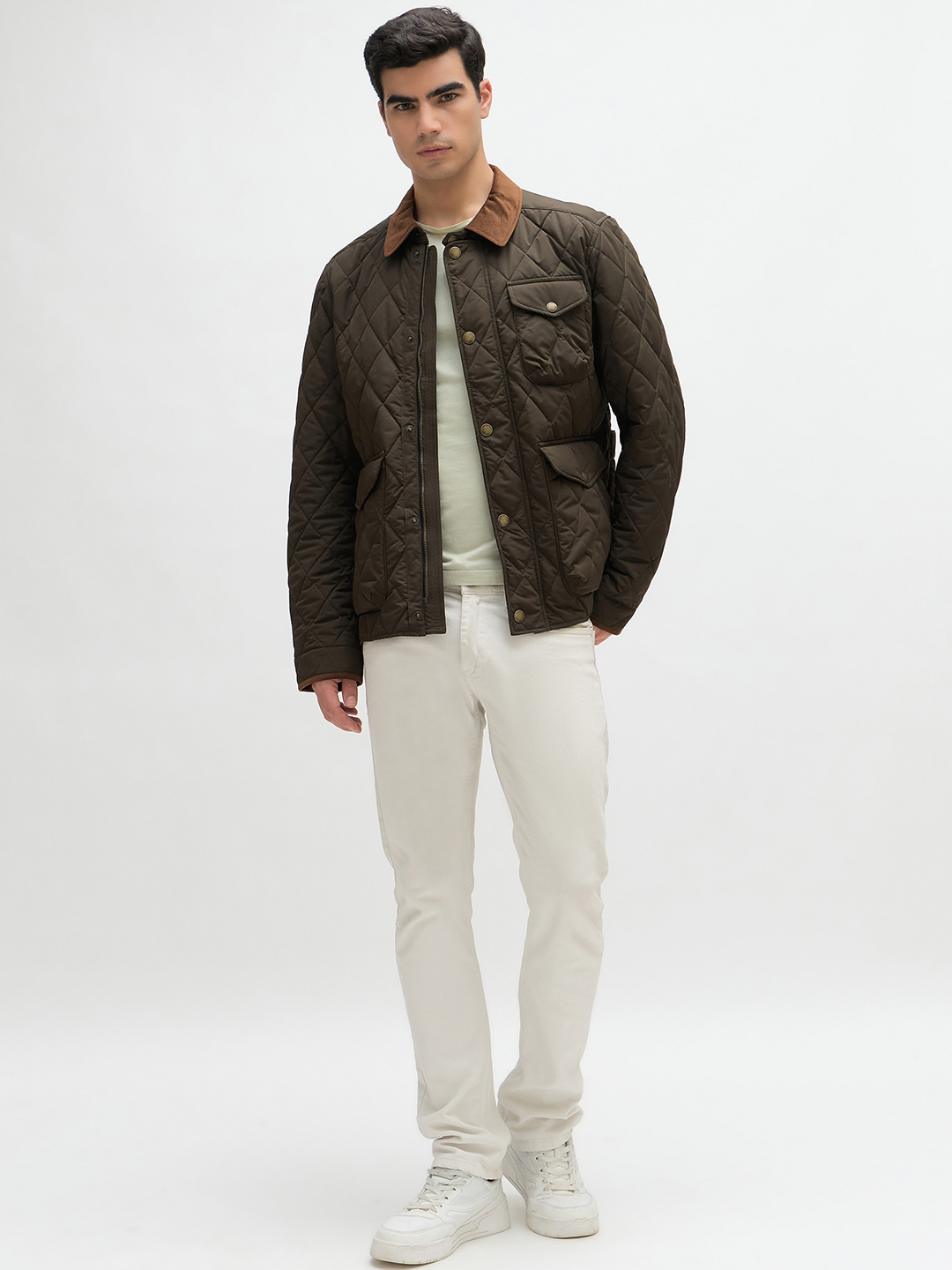 Fahrenheit full-sleeve jacket features a front zipper with a protective placket for added coverage and style. Designed with a classic corduroy collar, it offers a refined contrast and a timeless look. The long sleeves are finished with structured cuffs for a comfortable and secure fit.