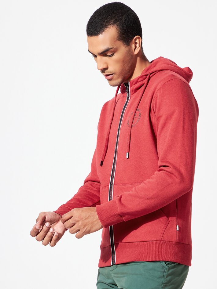 Front-zipper hooded sweatshirt is truly a wonder garment that is stylish, comfortable, and functional in equal measures. The contrast-coloured branding on the left chest accentuates the overall appeal of this sweatshirt.