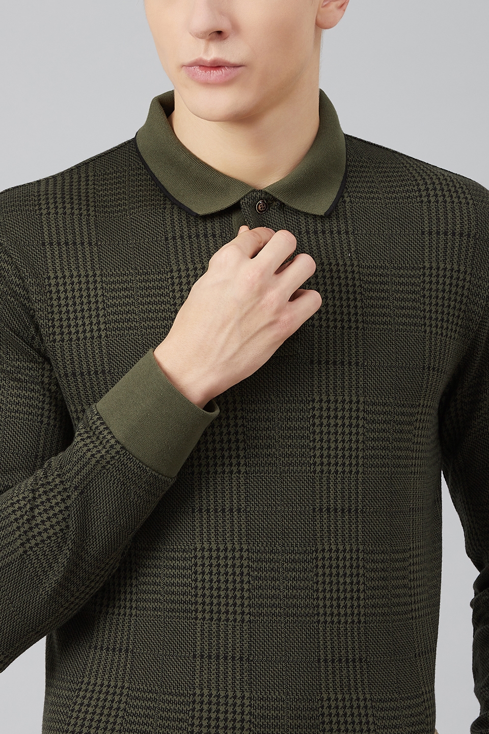 Fahrenheit men’s vintage Jacquard Polo features a unique check pattern with contrast collar. Equipped with long sleeves and ribbed cuffs for a more refined shape.