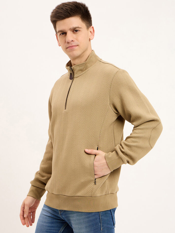 Stay warm and stylish with this half zipper jacquard sweatshirt. Crafted from a cotton blend, it offers all-day breathability. With its fine pattern and weave, this shirt is a must-buy for those seeking quality.