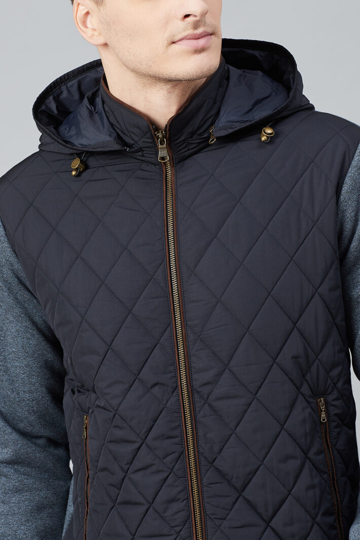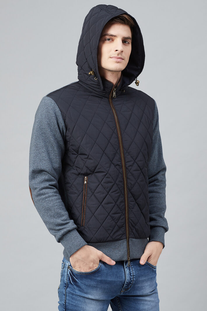 Fahrenheit front open sweat jacket with detachable hood. Front with quilted panels for added warmth. Back and sleeves made with soft cotton fleece. Suede elbow patches on the sleeves for that rugged look.