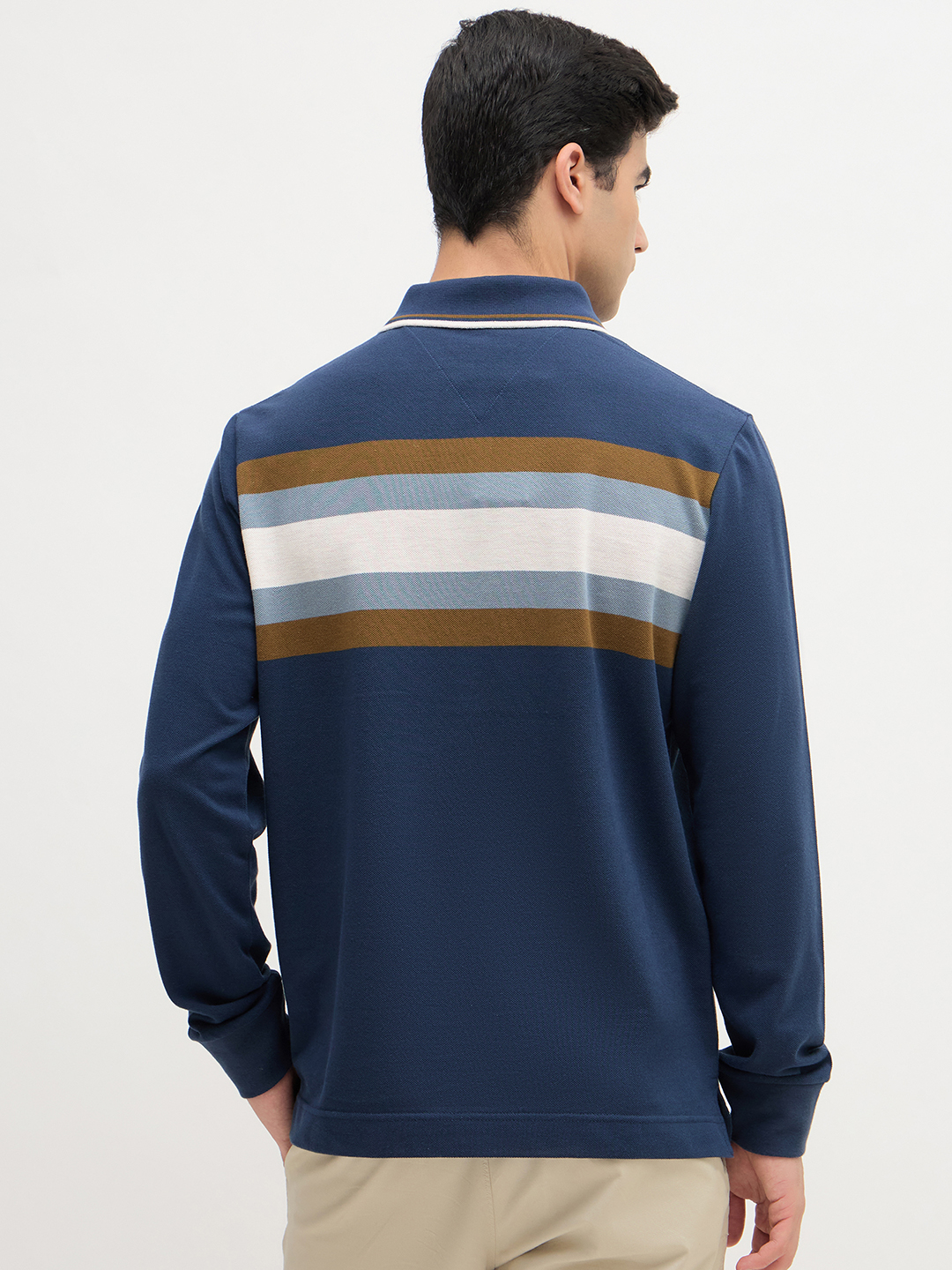 Elevate your casual style with our Pique Chest Stripe Long Sleeve Polo, a modern twist on a timeless classic. Featuring bold multi-stripe detailing across the front and back chest, it brings a dynamic edge to your everyday wardrobe.