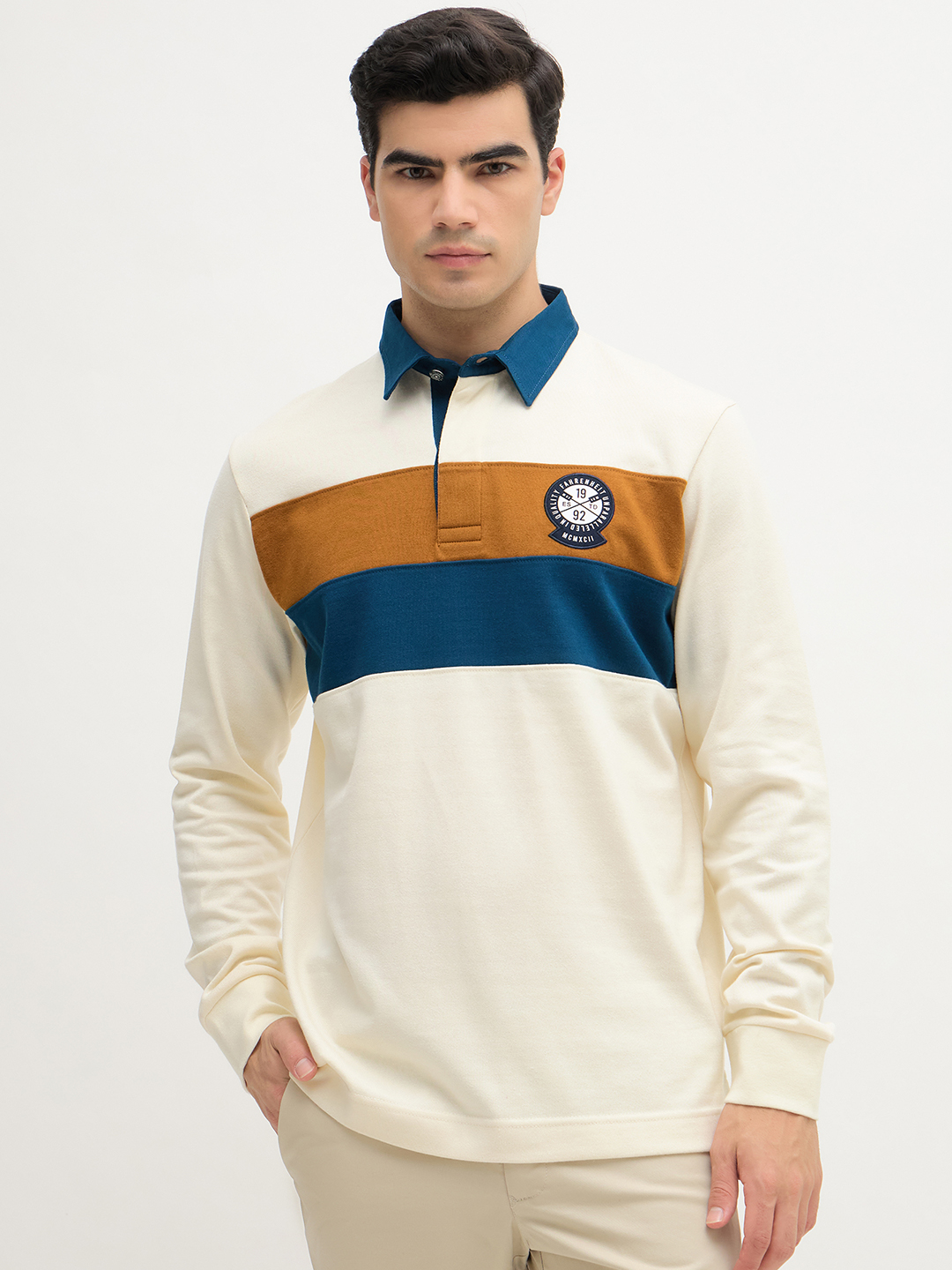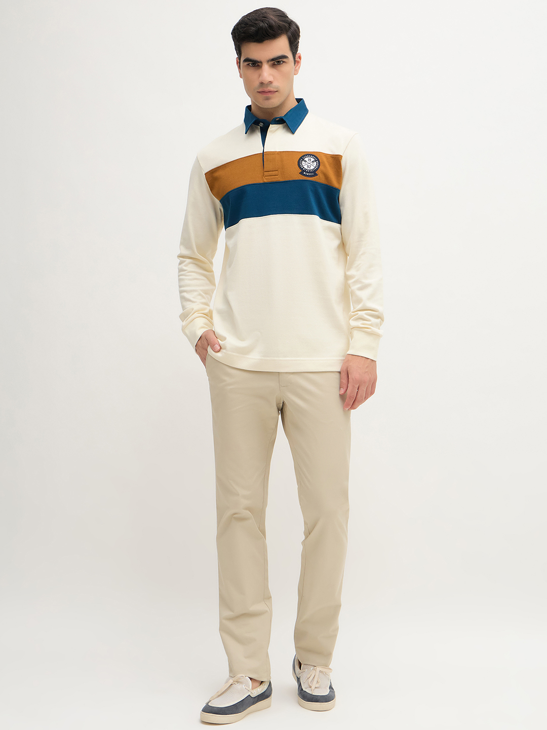 • Long sleeve polo with ribbed finishes.