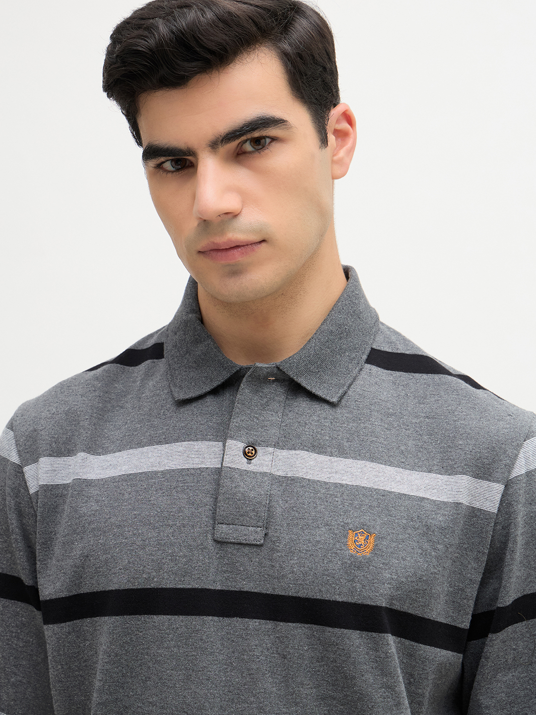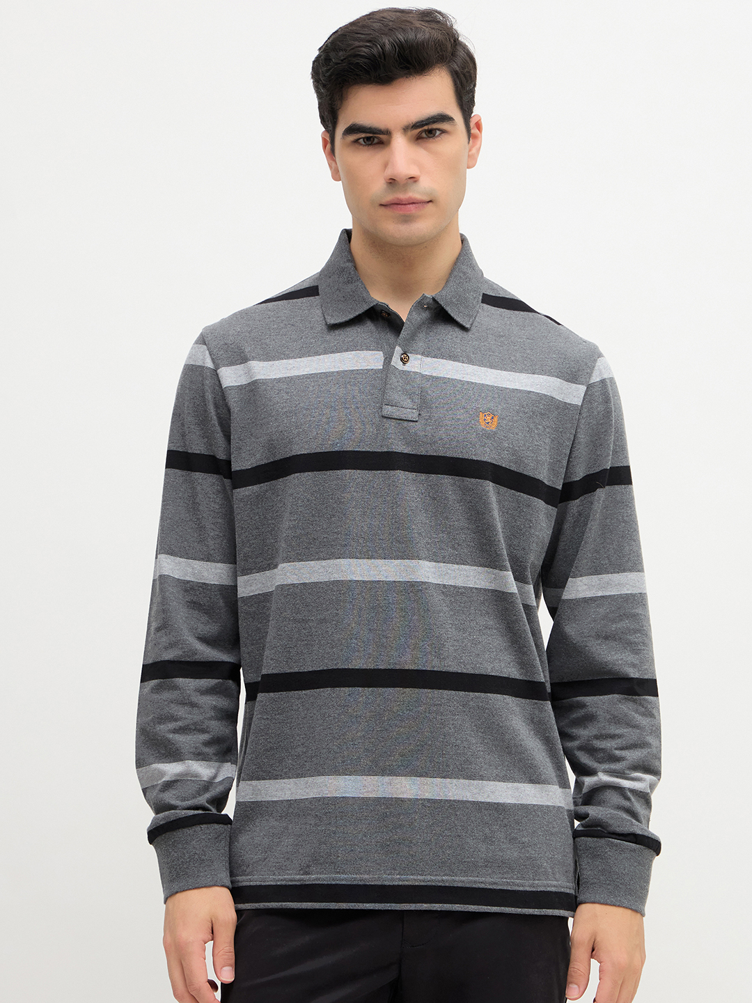 A classic design with a modern twist, this polo features an all-over horizontal stripes. Made in cotton jersey fabric, this full-sleeved polo is also superbly comfortable and soft on the skin.