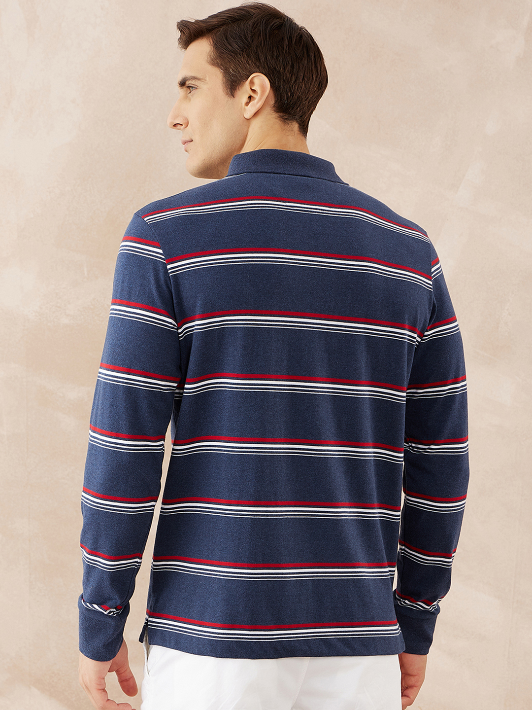 A classic design with a modern twist, this polo features an all-over horizontal stripes. Made in cotton jersey fabric, this full-sleeved polo is also superbly comfortable and soft on the skin.