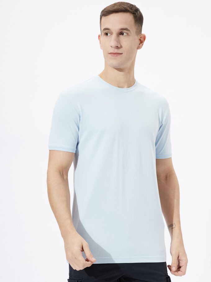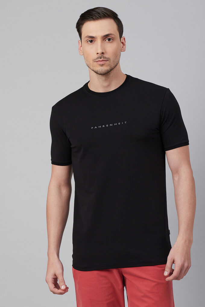 Fahrenheit Round Neck Solid T-Shirt, crafted from cotton lycra blend with jersey knit. Experience comfort and style like never before with this essential staple.