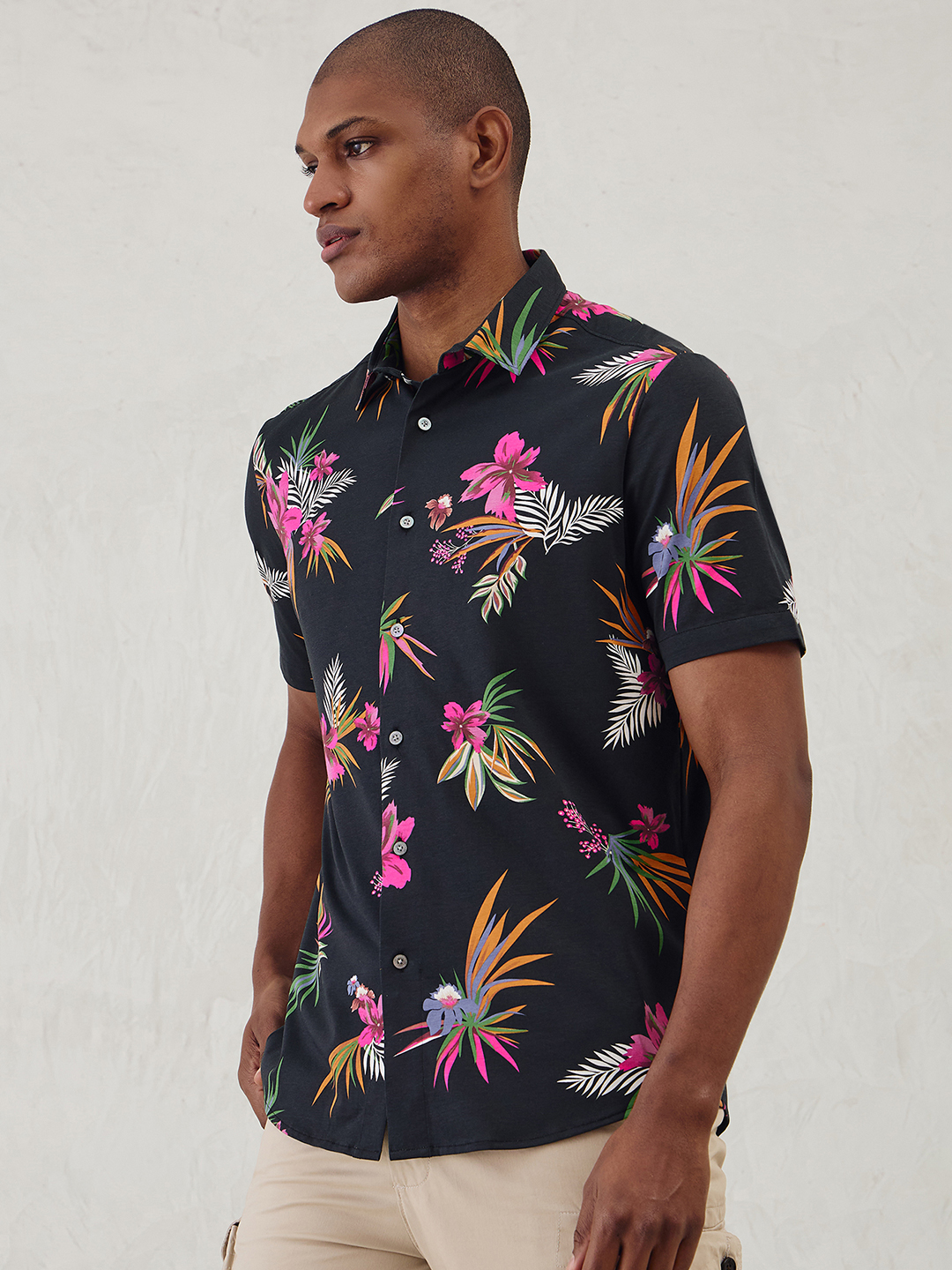 Add a burst of color and tropical charm to your wardrobe with the Floral Print Knit Shirt. Crafted from soft, breathable knit fabric, this shirt offers a comfortable, relaxed fit that’s perfect for warm days and casual outings.