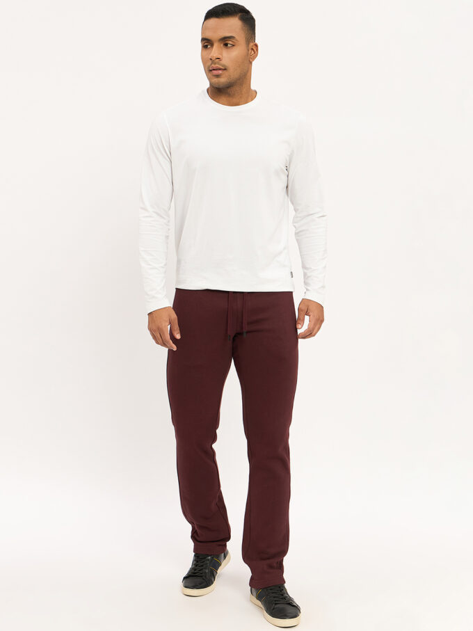 Comfortable bottom in cotton blend fabric and relaxed-fit silhouette with exterior drawcords, with open-hem, exterior drawcords, side pockets and one back pocket for extra storage.