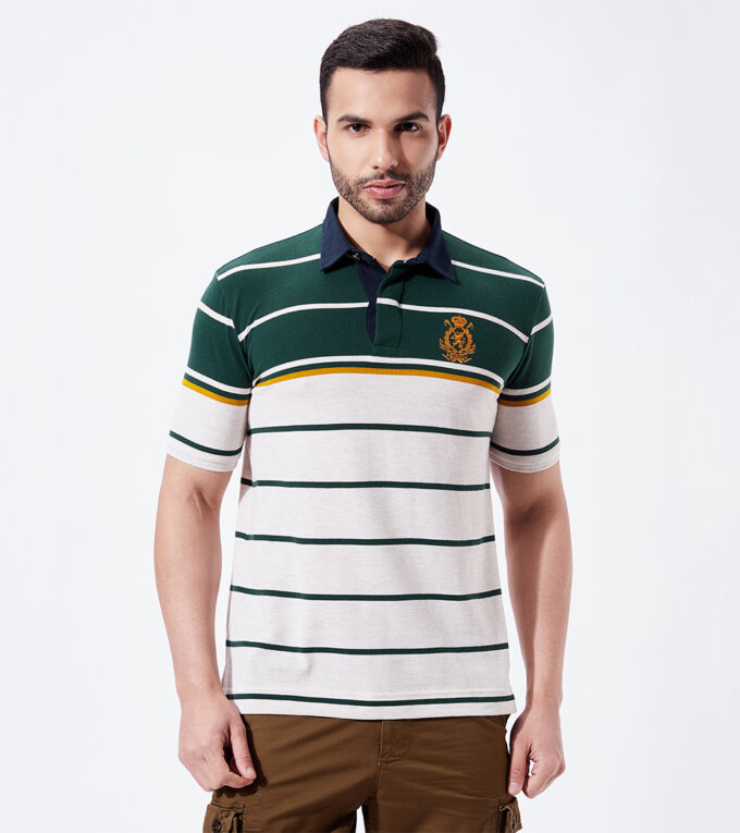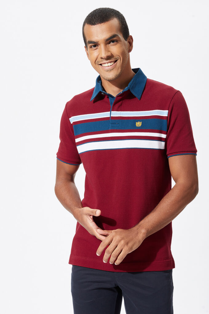 Fahrenheit men’s Rugby Stripe Polo made with yarn dyed fabric, designed with vintage inspiration for rough and tumble wear. Unique Rugby logo on chest with superior craftsmanship adds to the athletic effect.