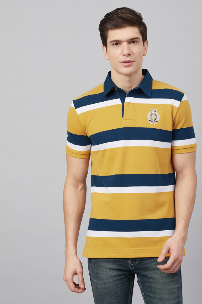 Fahrenheit men’s Rugby Stripe Polo made with yarn dyed fabric, designed with vintage inspiration for rough and tumble wear. Unique Rugby logo on chest with superior craftsmanship adds to the athletic effect.