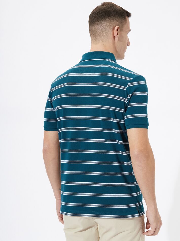 Add a little extra splash to your casual summer look with this all-over horizontal striped pattern pique polo. Its breathable polycotton fabric further lend a soft and airy feel with a regular fit for all day wearing comfort.