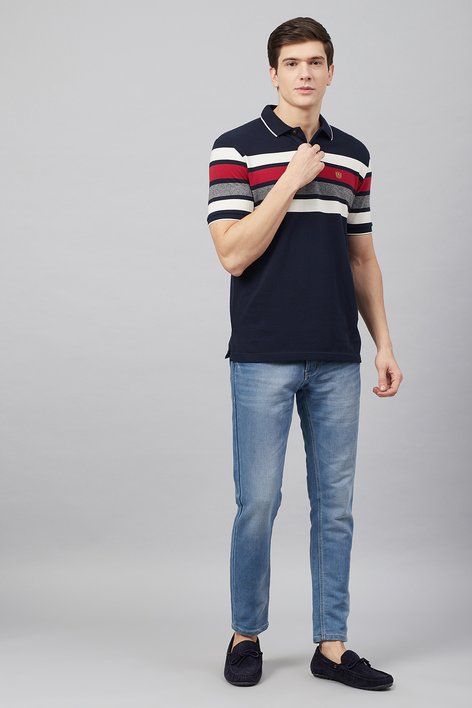 An exclusive design reflecting modernity and minimalism. Making a distinct visual impact is the broad contrast stripe across the chest and sleeves.