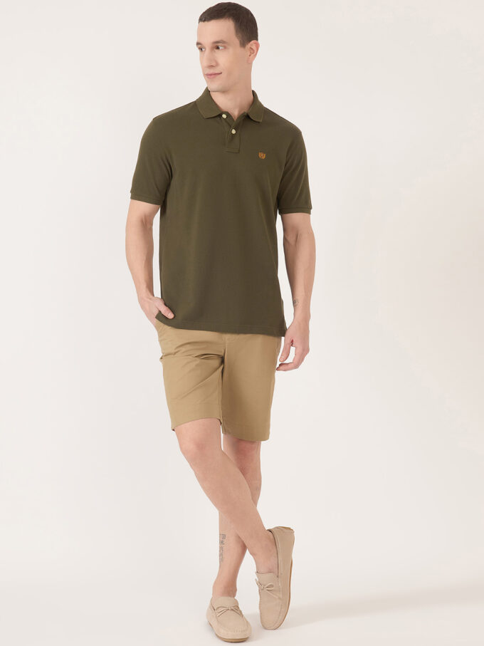 - Short sleeve polo with ribbed finishes.