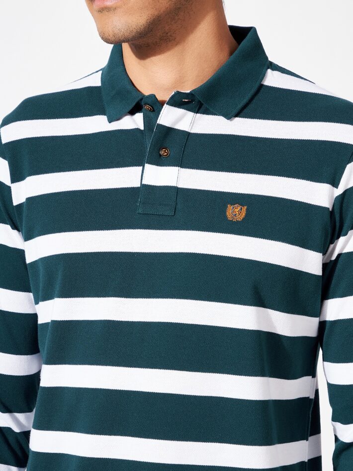 Elevate your laid-back looks with our cotton pique polo. Refresh your smart-casual wardrobe with this striped polo shirt. Signature Fahrenheit logo embroidered on the chest.
