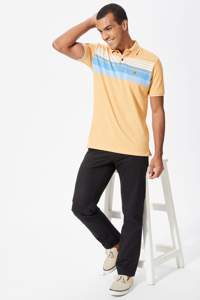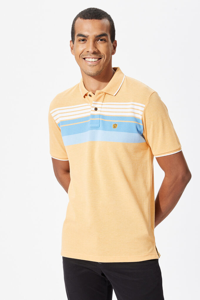 Fahrenheit men’s classic polo crafted from cotton pique that’s breathable and comfortable. Refresh your smart-casual wardrobe with this striped polo shirt. Signature Fahrenheit logo on the chest.