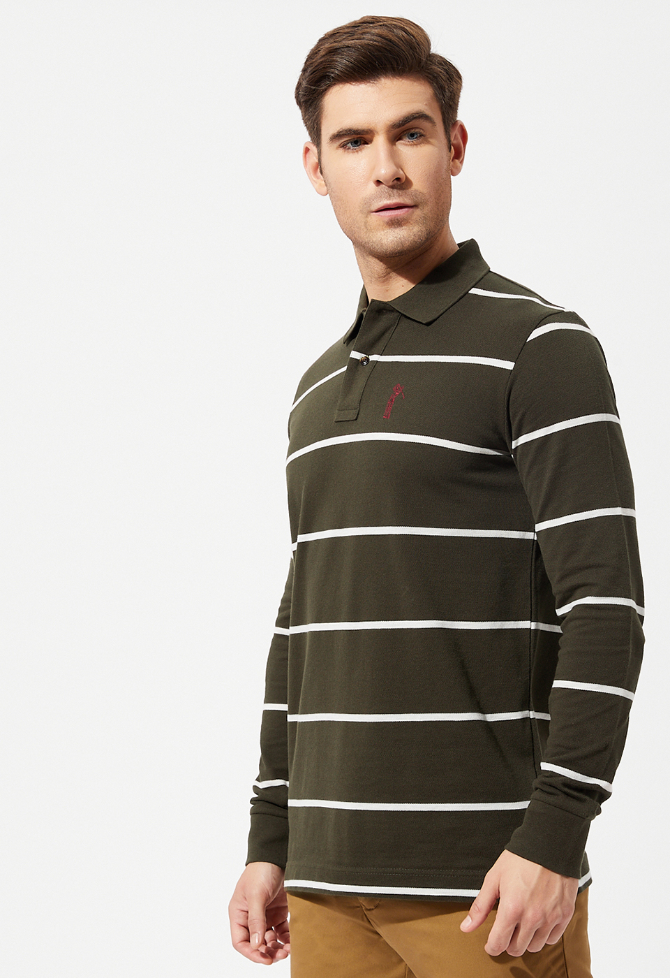 Fahrenheit men’s classic polo crafted from cotton pique that’s breathable and comfortable. Refresh your smart-casual wardrobe with this striped polo shirt. Golfer logo embroidered on the chest.