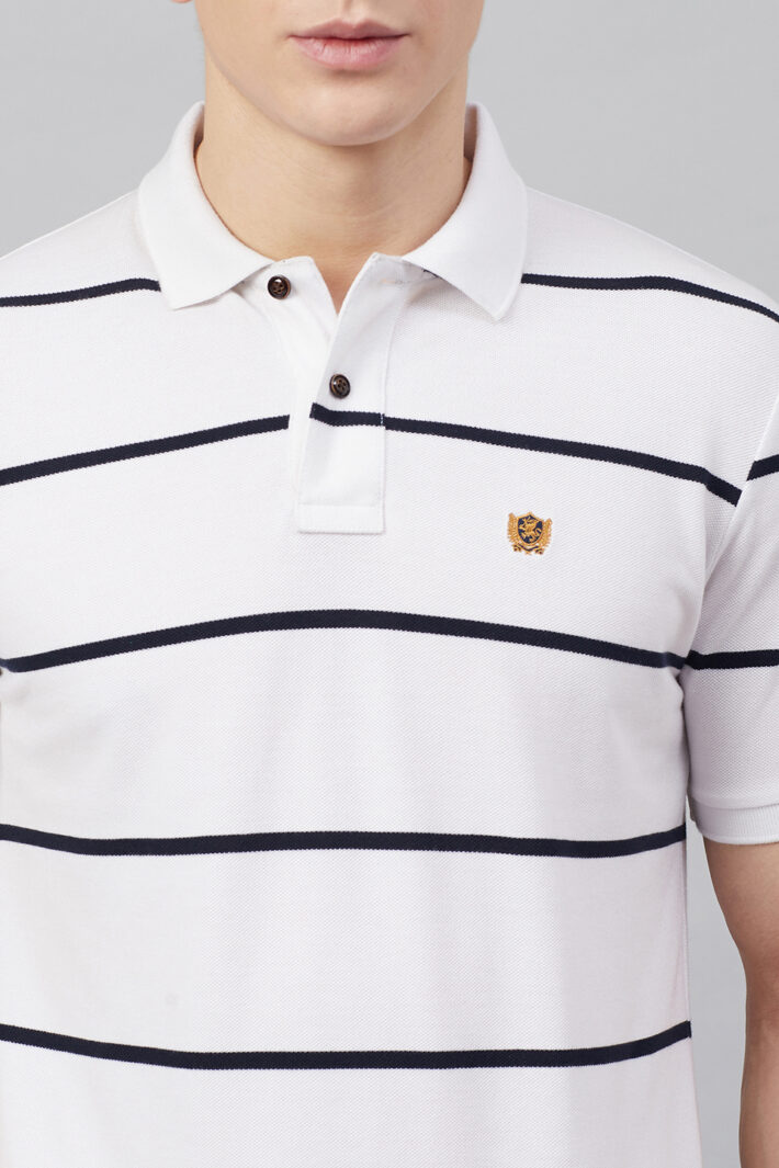 Fahrenheit men’s classic polo crafted from cotton pique that’s breathable and comfortable. Refresh your smart-casual wardrobe with this striped polo shirt. Signature Fahrenheit logo on the chest.