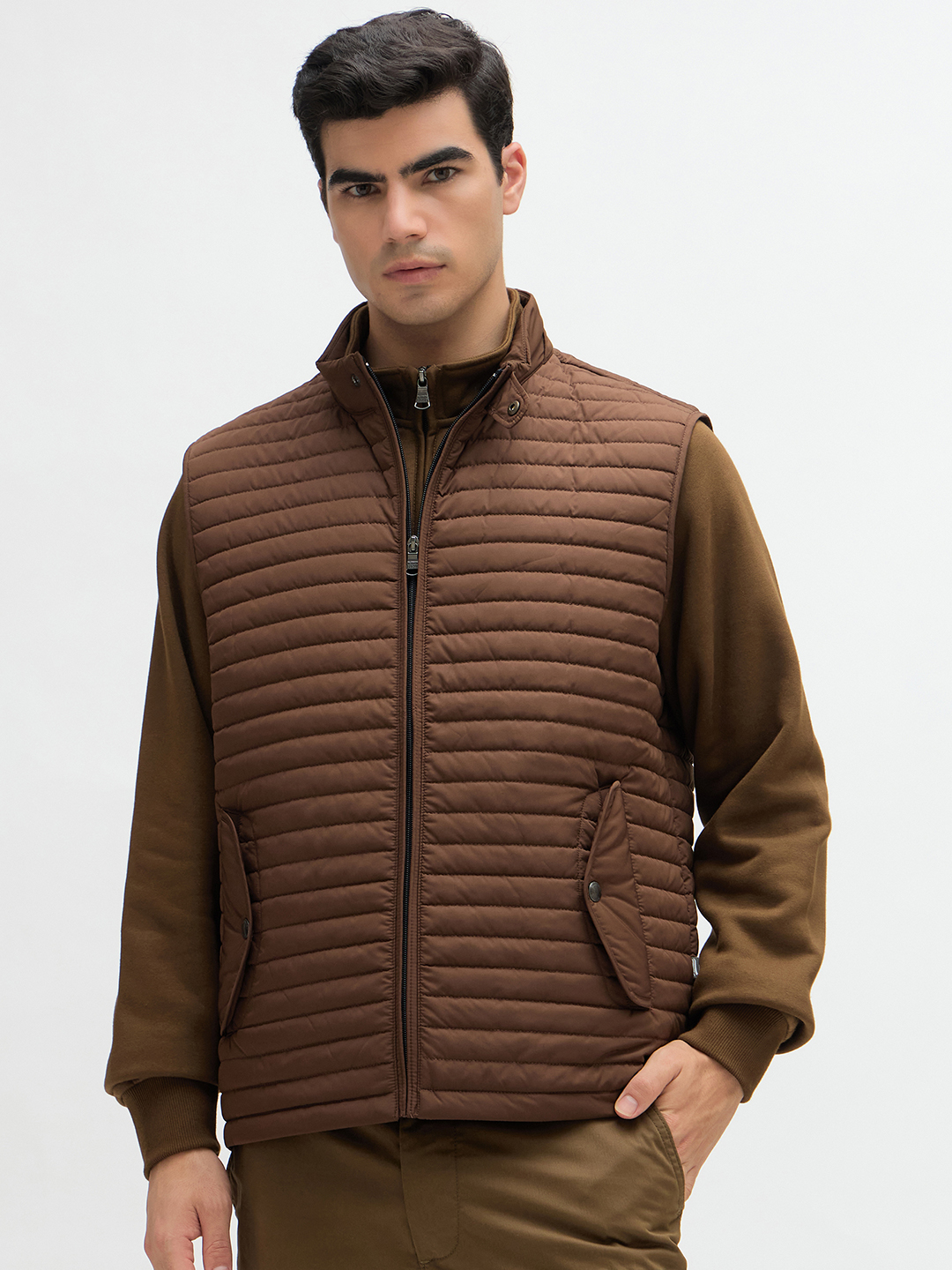 Stay warm without the bulk. This sleeveless quilted jacket features lightweight insulation, a smooth shell and a streamlined silhouette designed for easy layering.