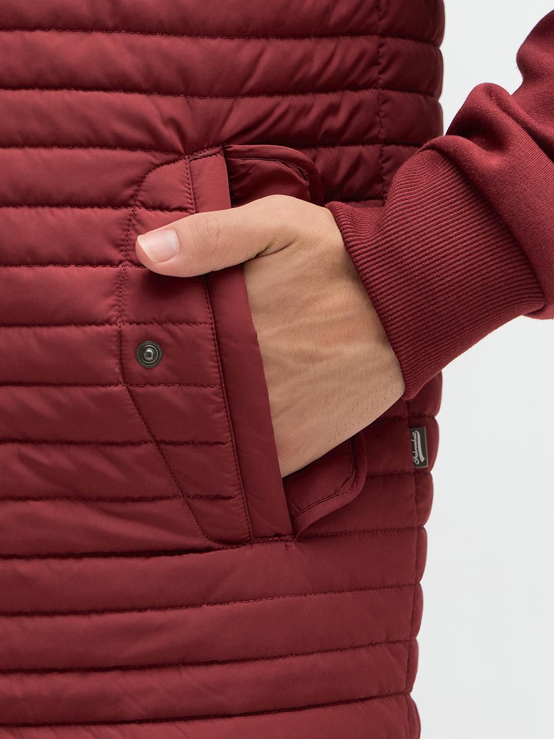 Stay warm without the bulk. This sleeveless quilted jacket features lightweight insulation, a smooth shell and a streamlined silhouette designed for easy layering.
