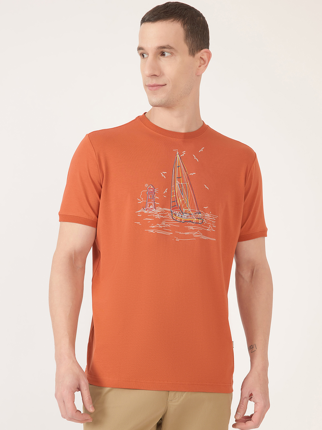 Crafted with soft cotton jersey, this T-shirt features a painterly sailboat graphic embroidered at the front.