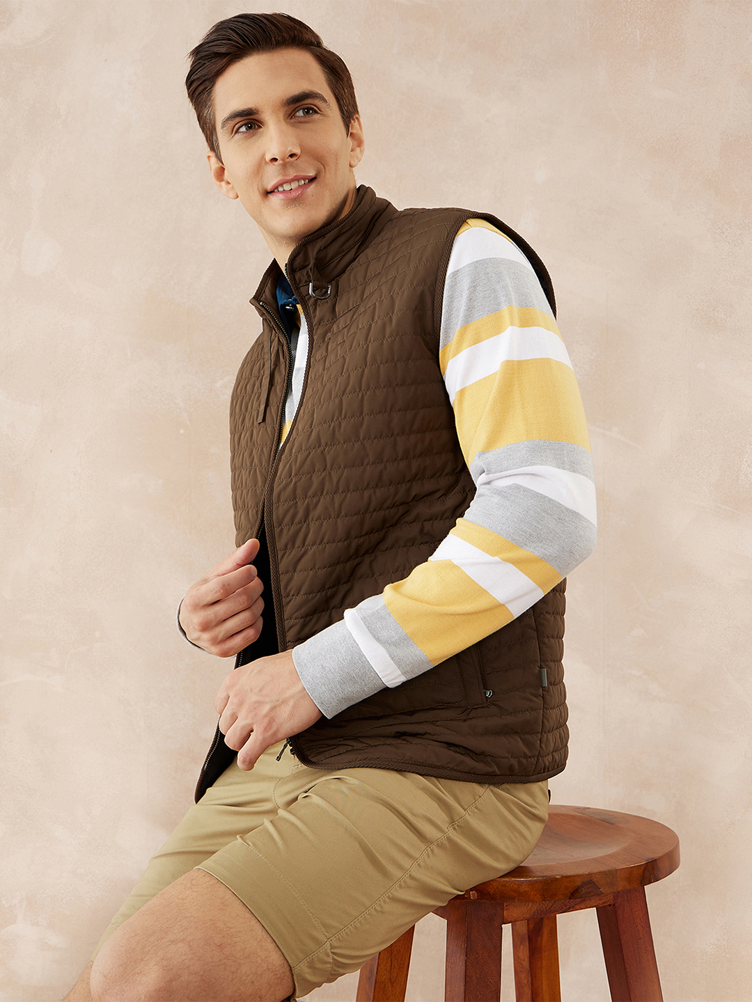 Crafted from premium-quality fabric this light weight jacket is a versatile addition to your wardrobe, featuring a sleeveless silhouette, a stand-up collar, and a front zipper. Its quilted pattern adds a touch of sophistication, while multiple pockets provide practicality.