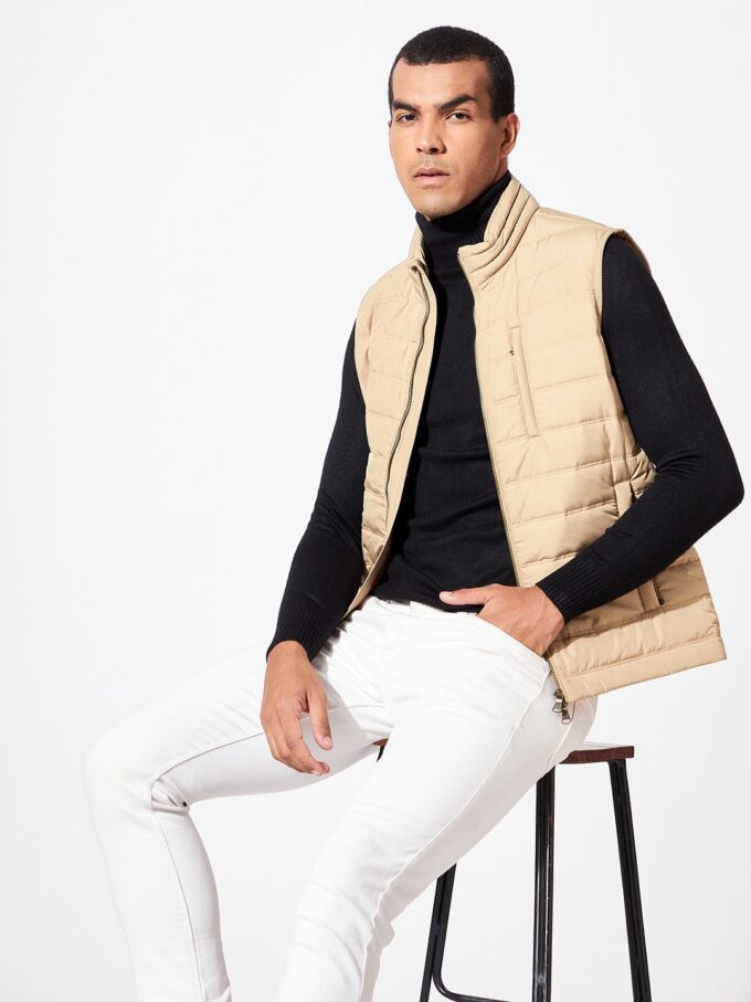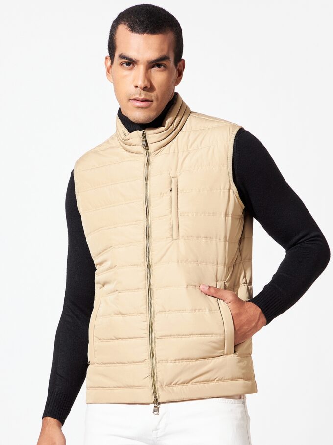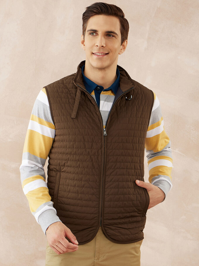 Crafted from premium-quality fabric this light weight jacket is a versatile addition to your wardrobe, featuring a sleeveless silhouette, a stand-up collar, and a front zipper. Its quilted pattern adds a touch of sophistication, while multiple pockets provide practicality.