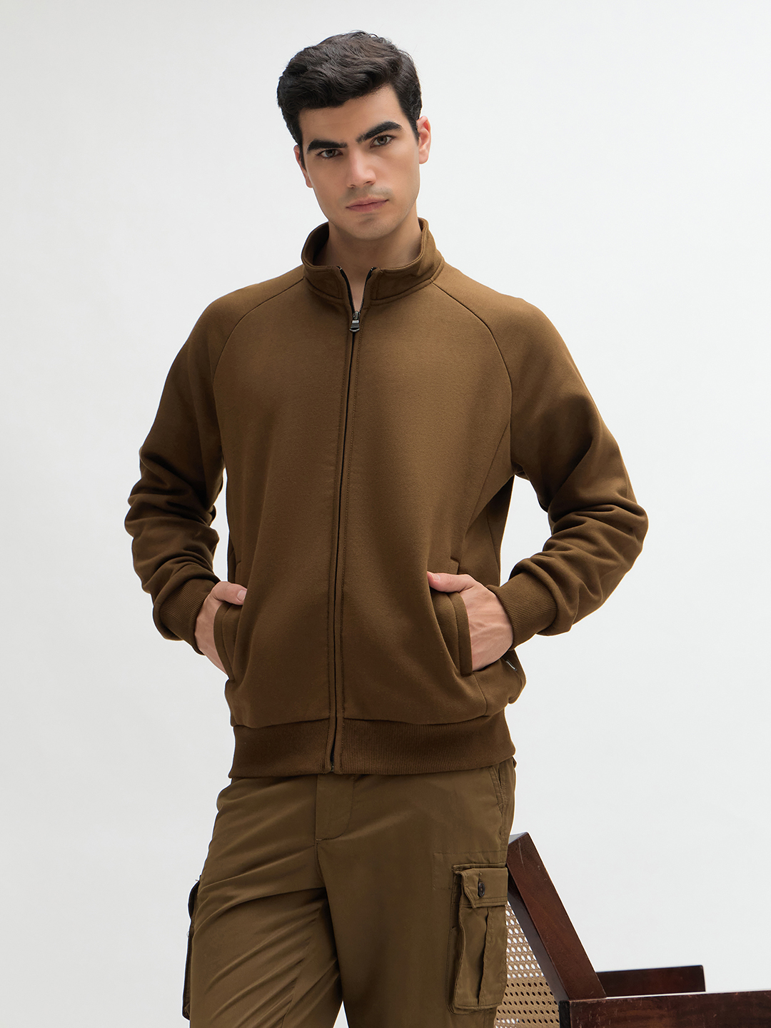 • Raglan full sleeves and concealed zip handy pockets.