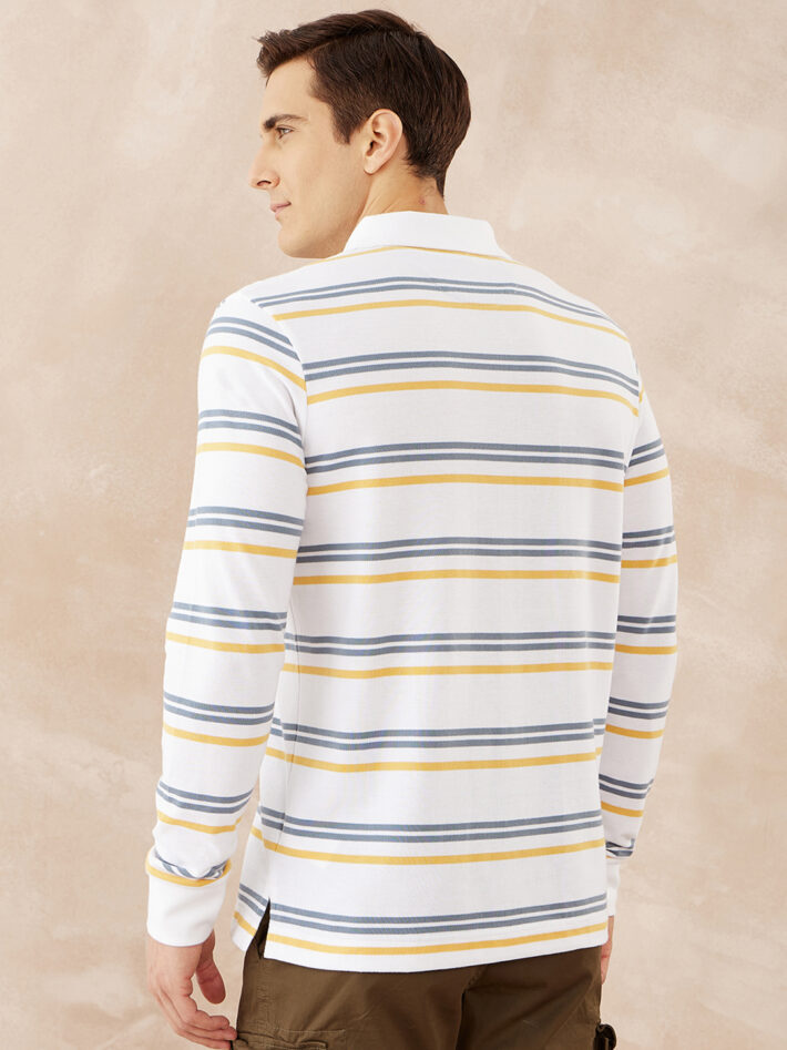 A classic option for an effortless smart look. It is decorated with repetitive colored stripes and logo embroidered on the chest.