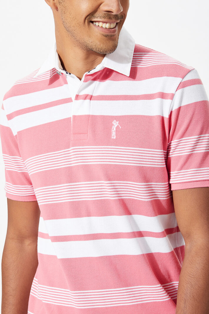 A timeless wardrobe essential for casual styling is this rugby polo, the blend of cotton and polyester makes it super soft and comfortable to wear throughout the day. Team it with any separates. Golfer logo embroidered on chest.