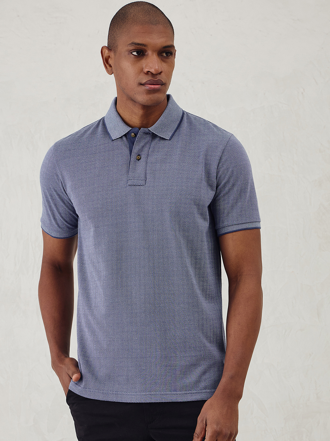 Fahrenheit men’s jacquard polo, crafted in ultra-lightweight cotton knit that offers comfort and freshness throughout the season.