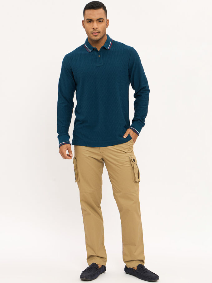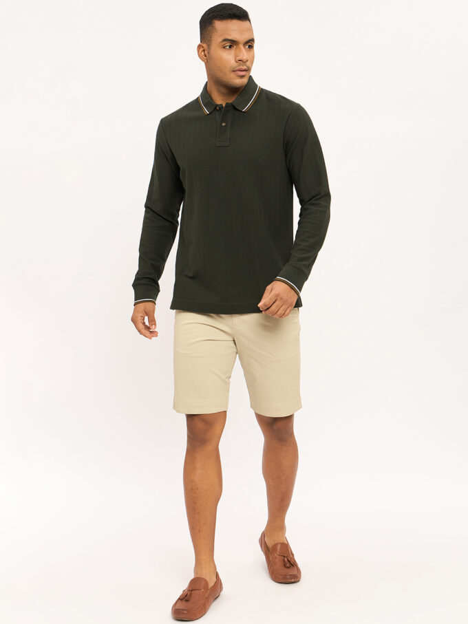 - Long sleeve polo with ribbed finishes.