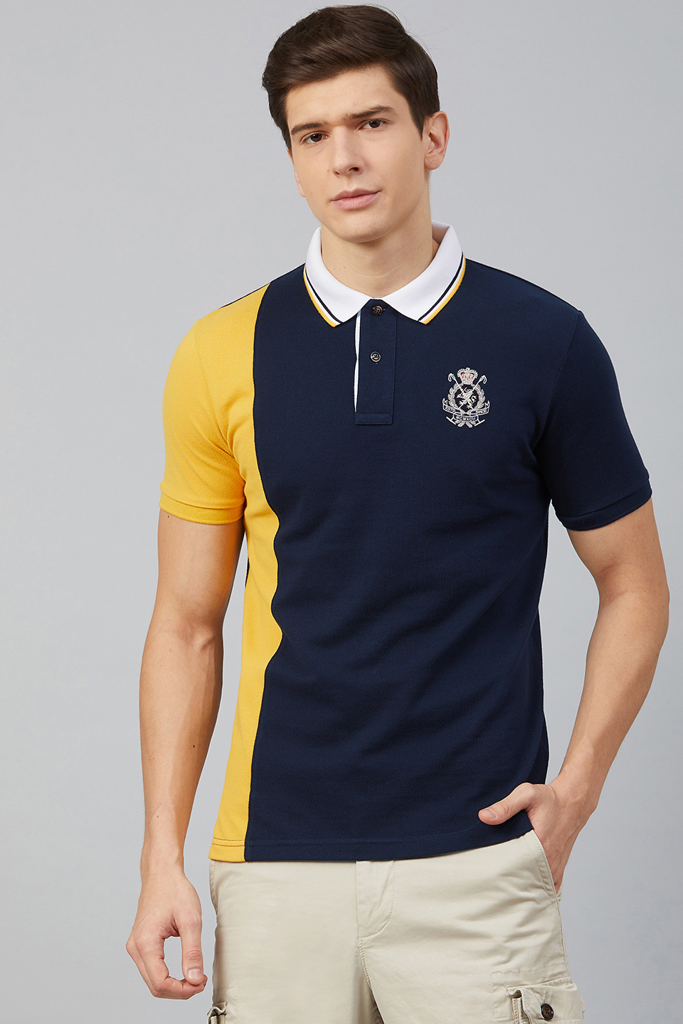 Fahrenheit men’s two colourblock avant-garde Pique polo is a combination of innovation and style. Signature logo on chest embroidered with lurex thread to give it the extra edge.